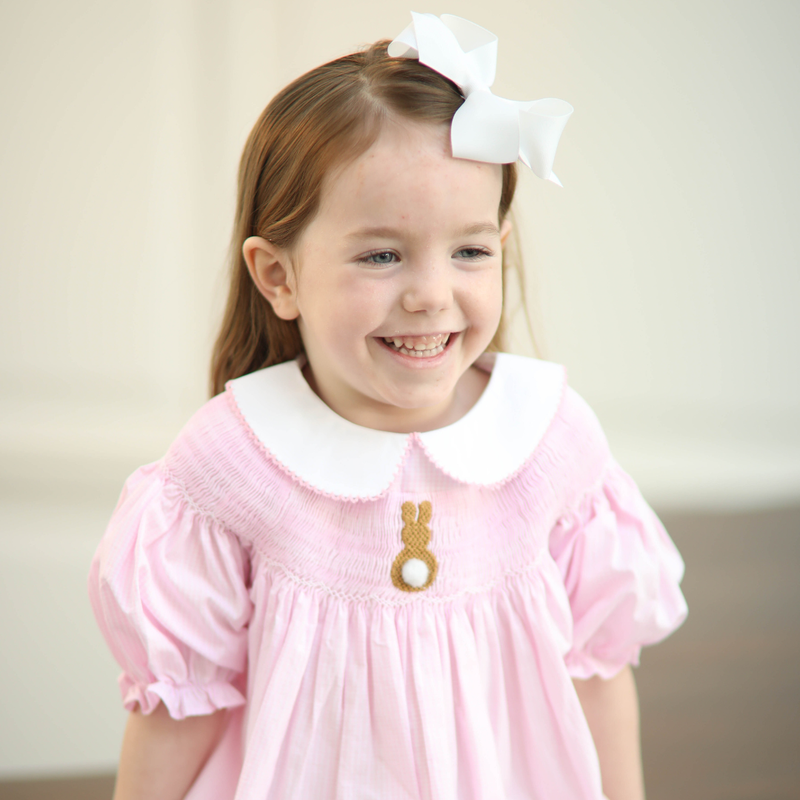 Pink Gingham Smocked Easter Bunny Dress