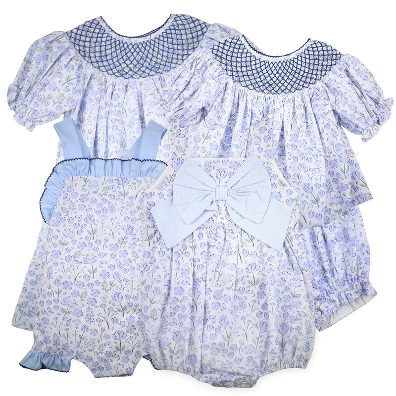 Blue Gingham Smocked Easter Bunny Bubble