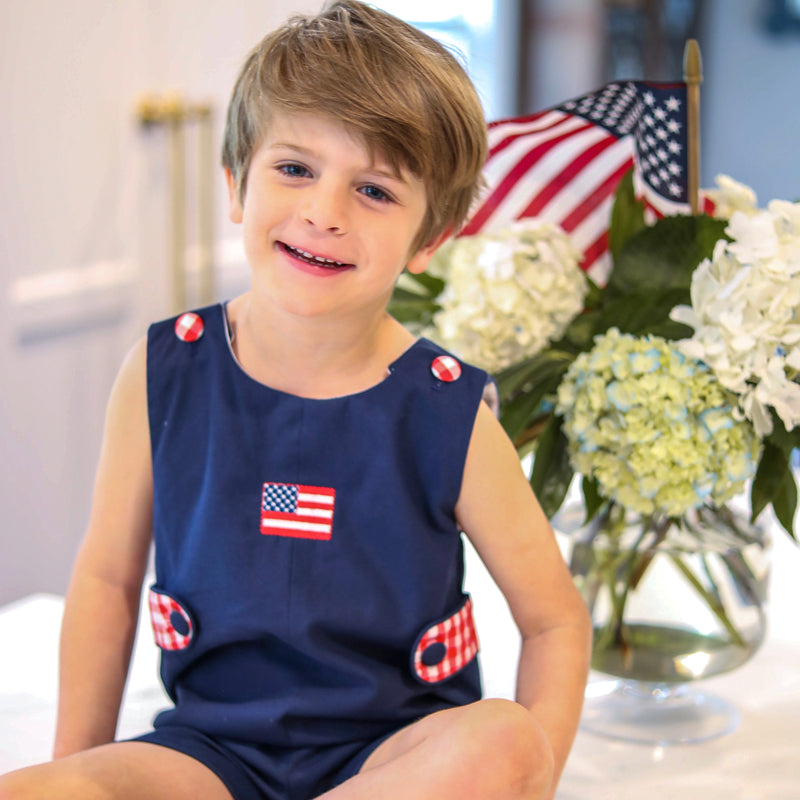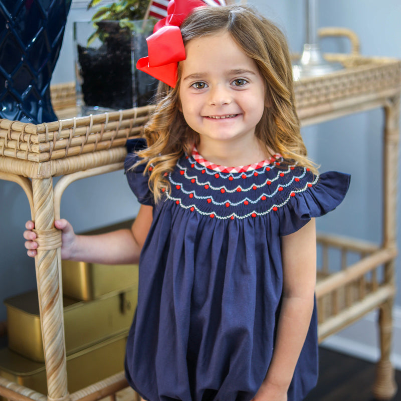 Navy Smocked Patriotic Bubble