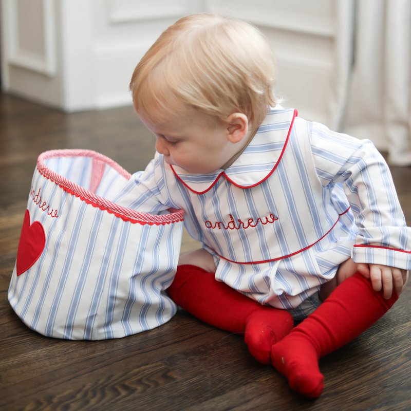 Valentine's Day Blue Ticking Striped Bucket with Heart
