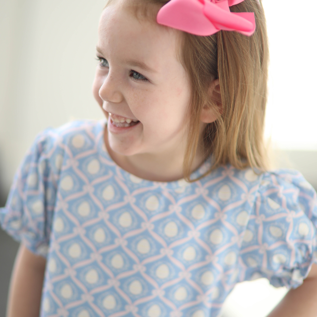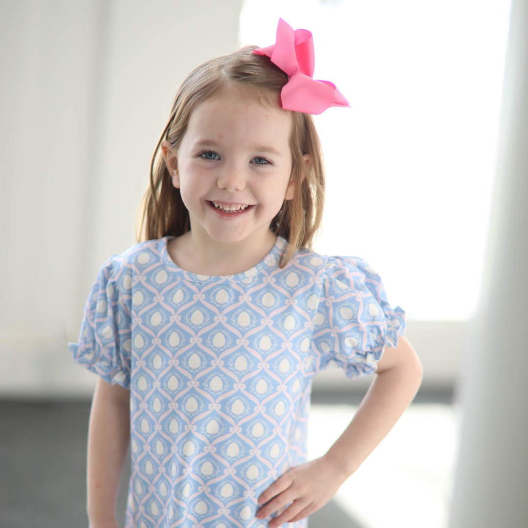 Classic, elegant, and Easter-ready, our Easter Medallion Egg Dress is a beautiful statement piece for spring celebrations. Featuring a timeless medallion-style egg print with delicate wreath and ribbon details, this dress blends heirloom charm with a fresh seasonal feel. Designed in a soft, lightweight cotton fabric with a comfortable fit, it’s perfect for Easter Sunday, family photos, church, and special spring occasions. A polished and picture-perfect Easter dress that will be treasured year after year.
