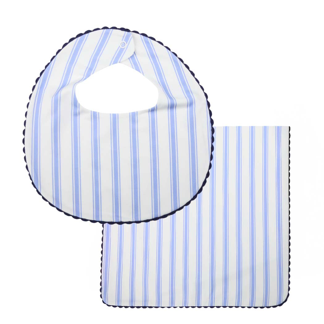 Blue Ticking Burp Cloth & Bib Set