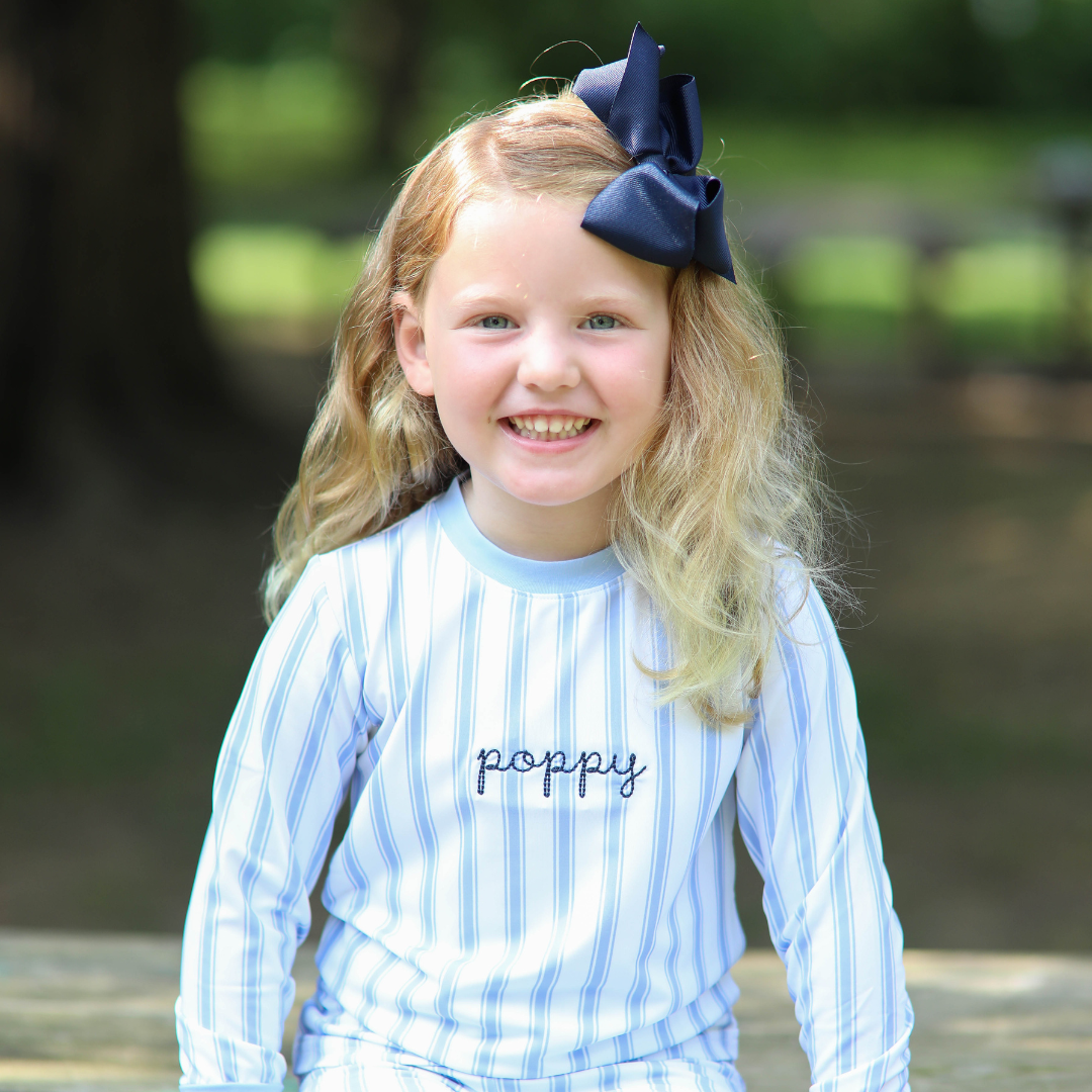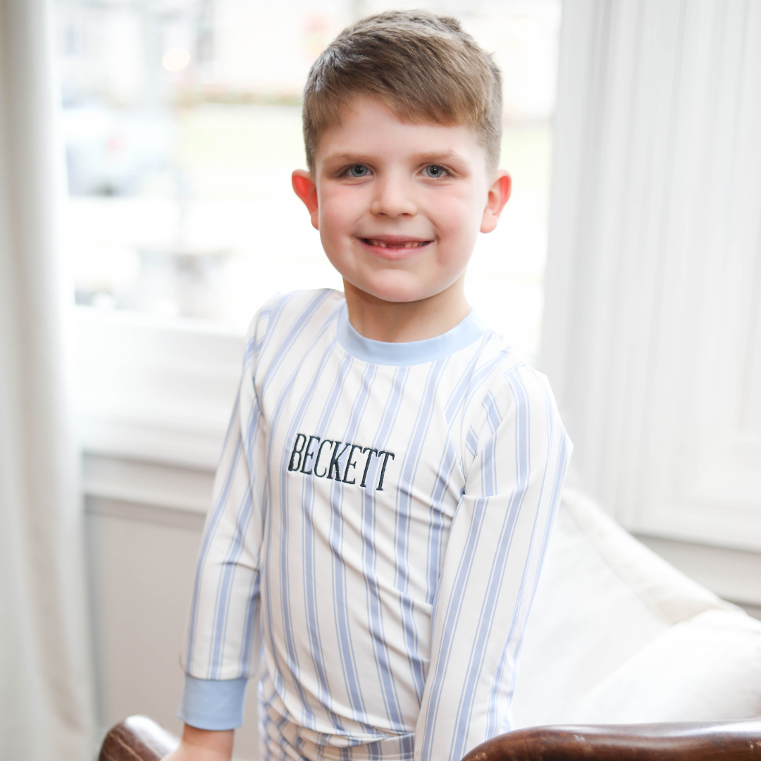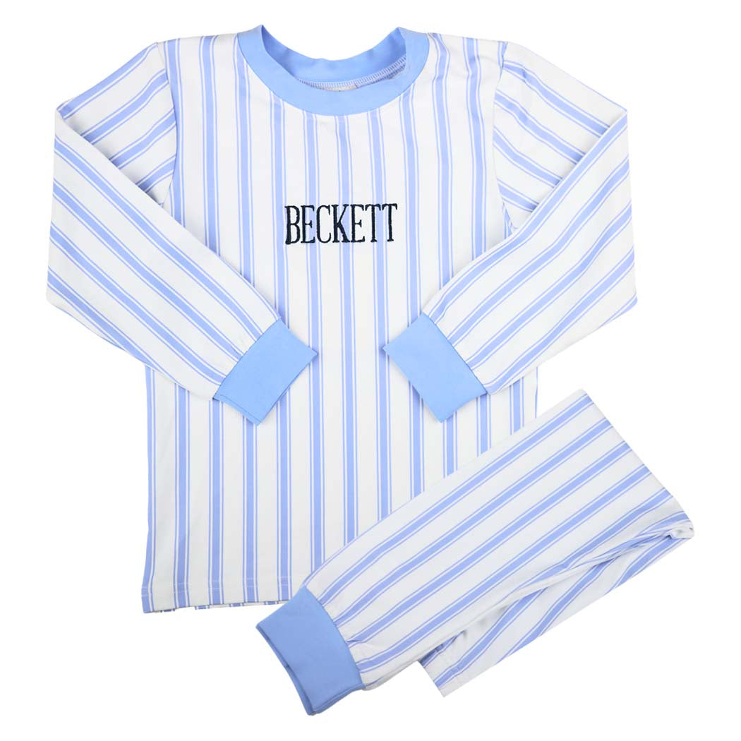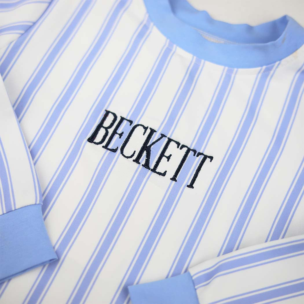 It’s hard to imagine anything more classic and precious! Our Blue Ticking Striped zippered set is a timeless choice for your little one! Featuring a classic ticking stripe pattern and a soft, breathable knit fabric, this romper is perfect for a major snuggle session! Navy piping trims the back flap and navy buttons secure it. Comfortable and stylish, it’s a wardrobe must-have. Shop now for a touch of classic perfection!