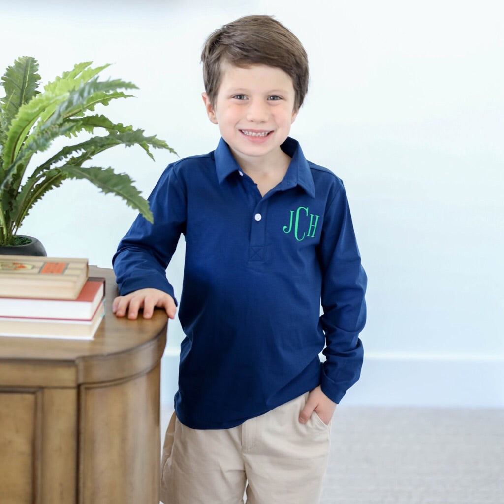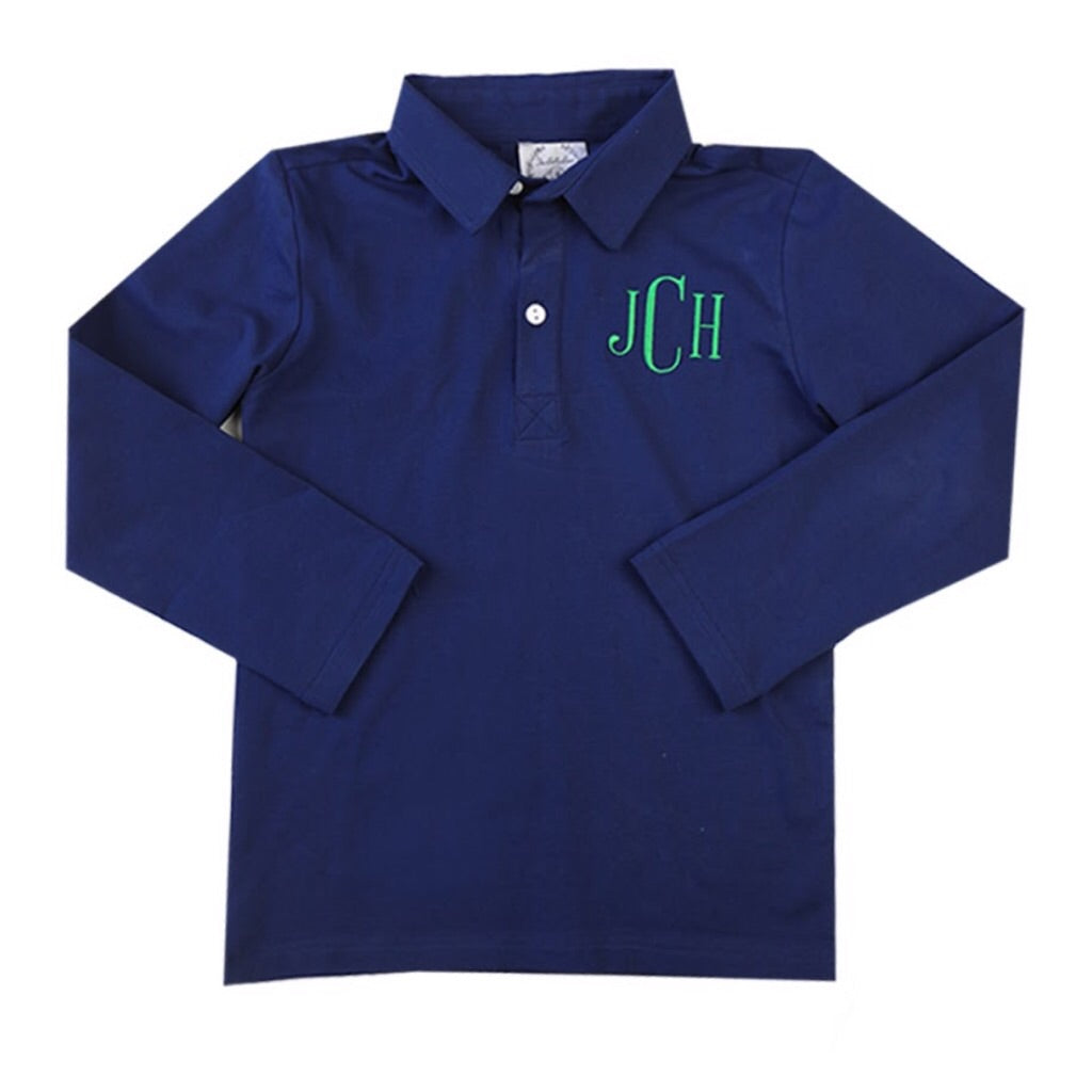 Now available in long-sleeve, the monogram options for our classic polos are endless! Choose a design and thread color to make these truly unique for your little ones. As always, please contact us directly if you would like a custom design.