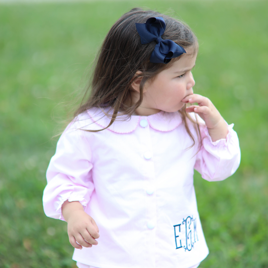 Cover them in pure sweetness with our brand new Baby Pink and Navy Blue Gingham swing sets. Each set includes a beautiful gingham cotton swing top with gingham trim and coordinating gingham diaper covers. Add a monogram to make this the most perfect statement set! And don’t forget about using this set as “big sibling” announcements!