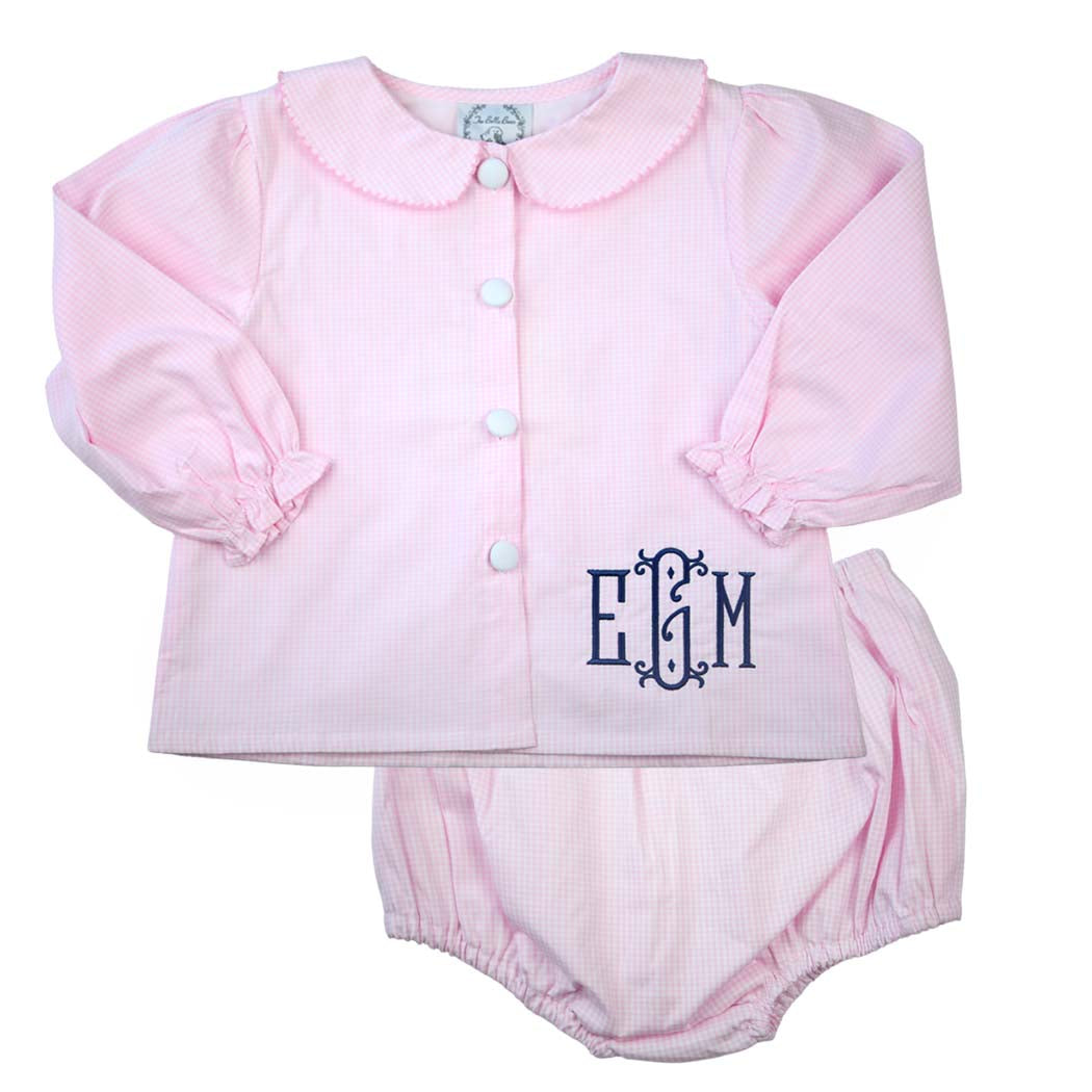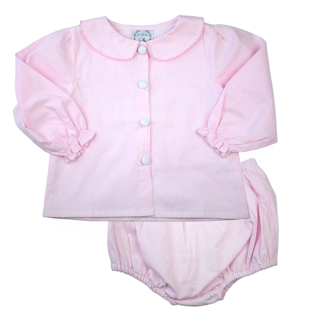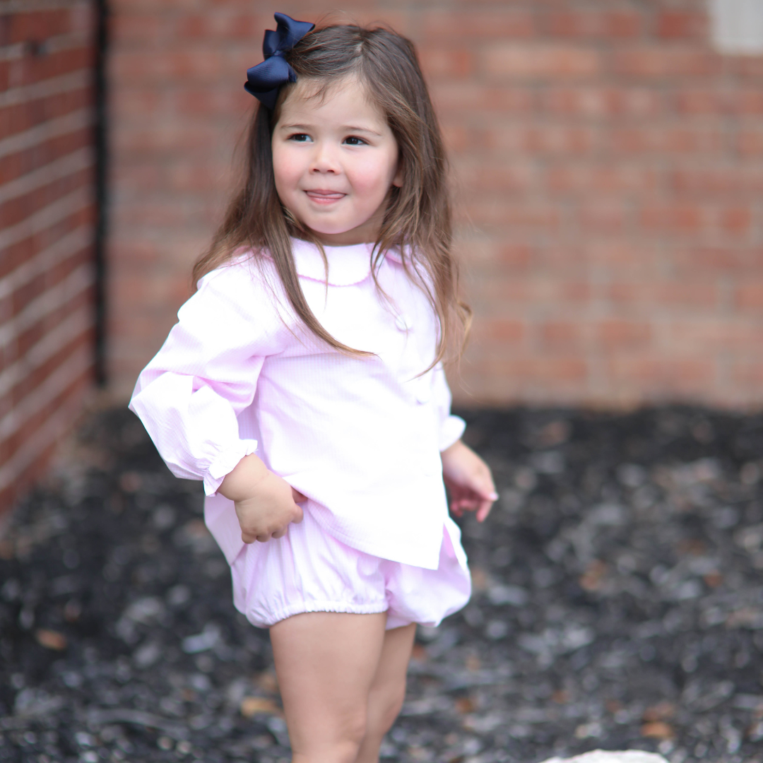 Lila Pink Gingham Long Sleeve Bloomer Set