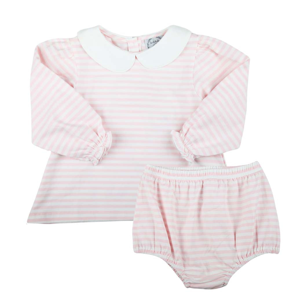 Add a touch of preppy to your little one's wardrobe with our pink stripe knit swing set! Featuring a cozy knit fabric and playful swing silhouette, this adorable two-piece set is perfect for twirling through any occasion. Soft, stylish, and comfortable, it's a must-have for every girly wardrobe. Shop now for the perfect outfit!