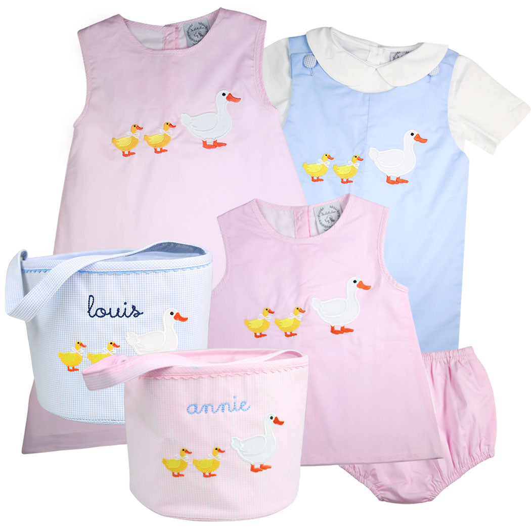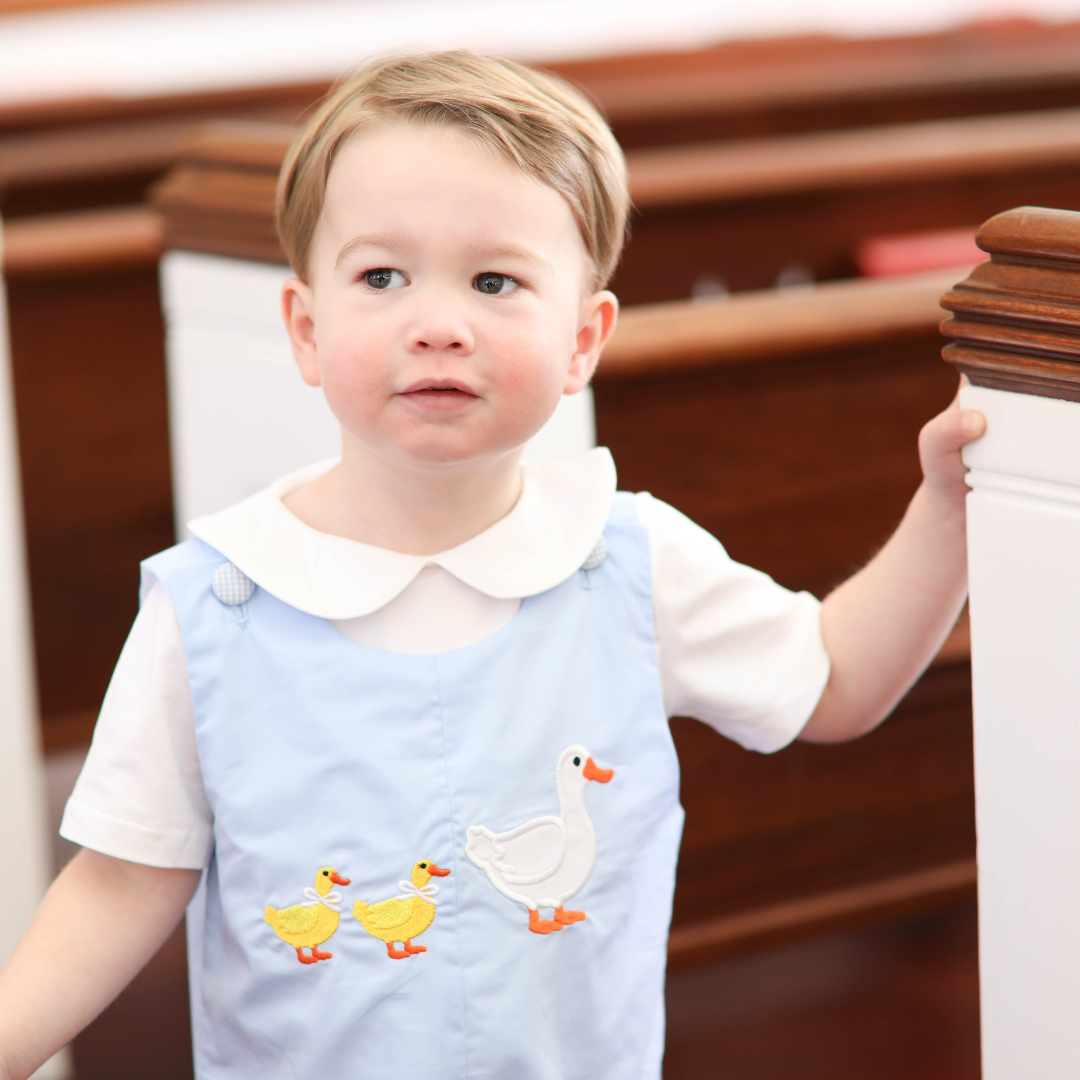 Hop into springtime style with our Boys Easter Shortall featuring adorable ducklings! Perfect for your little gentleman's Easter festivities, this charming shortall is designed to capture the essence of the season. Crafted with soft and breathable fabric, it ensures all-day comfort as he hunts for eggs or poses for photos with the Easter bunny. The playful duckling prints add a touch of whimsy, while the classic shortall silhouette exudes timeless charm. Be sure to find the coordinating sibling styles in the shop!