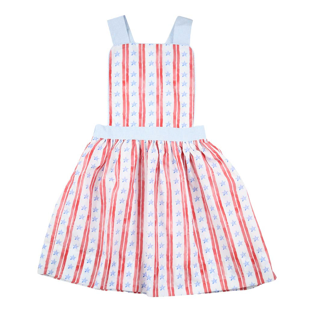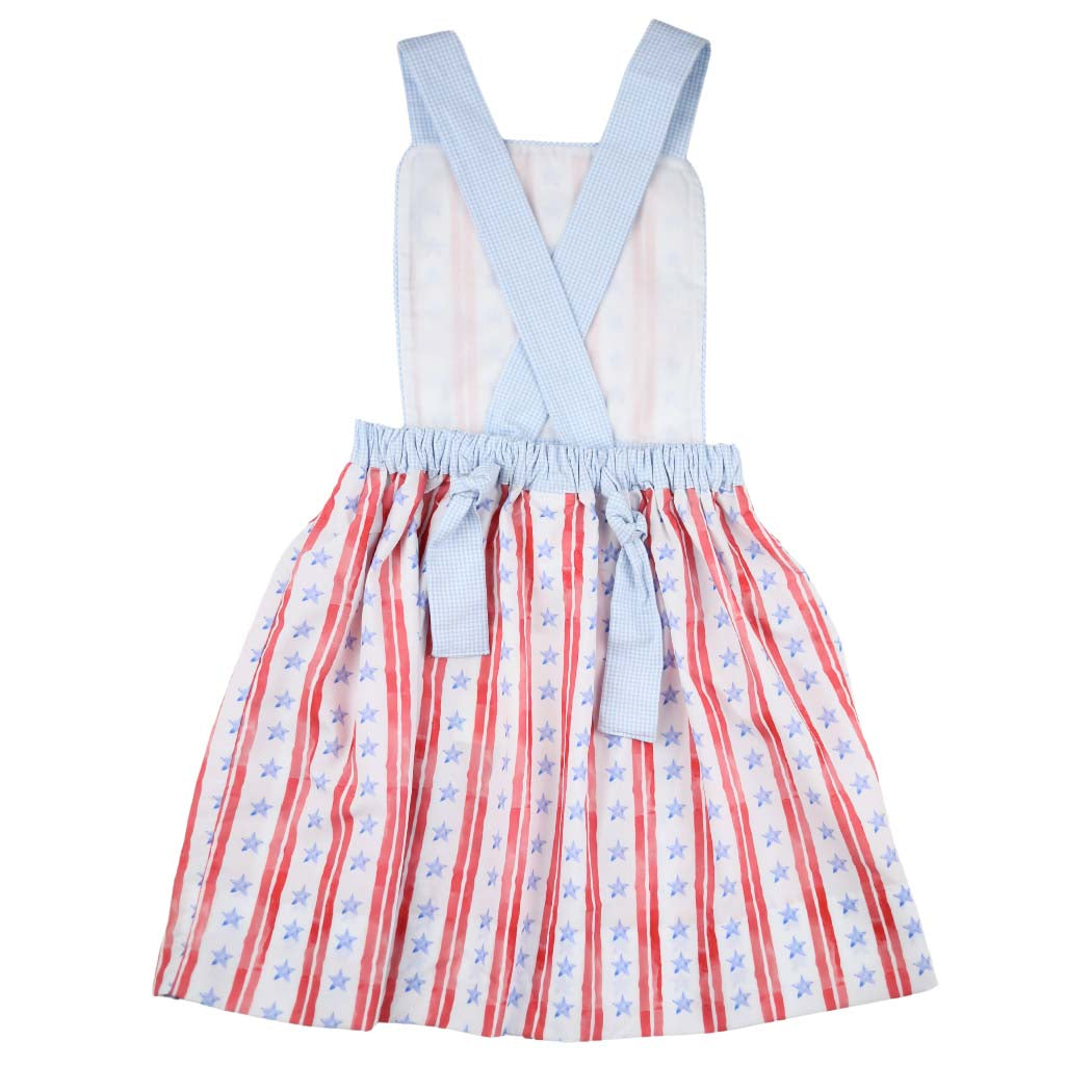 The girls patriotic stars open back dress is a sweet and stylish choice for summer festivities. With red, white, and blue star accents and a charming open back detail, this dress is perfect for warm-weather celebrations like Memorial Day and the Fourth of July. A standout look for your little firecracker!