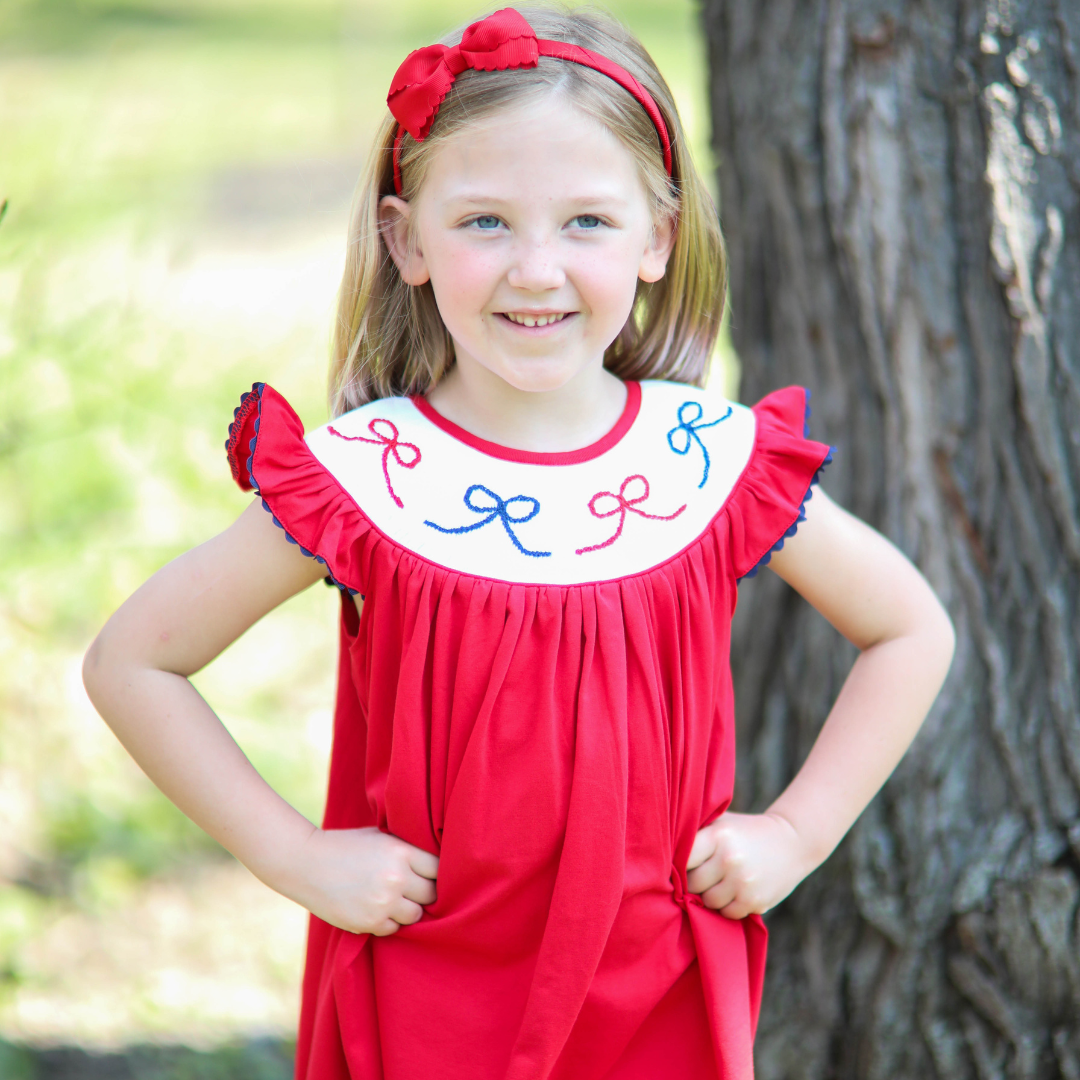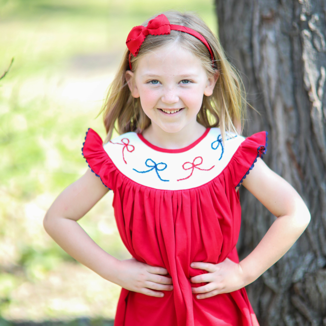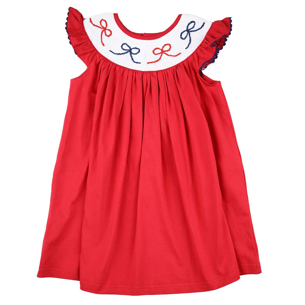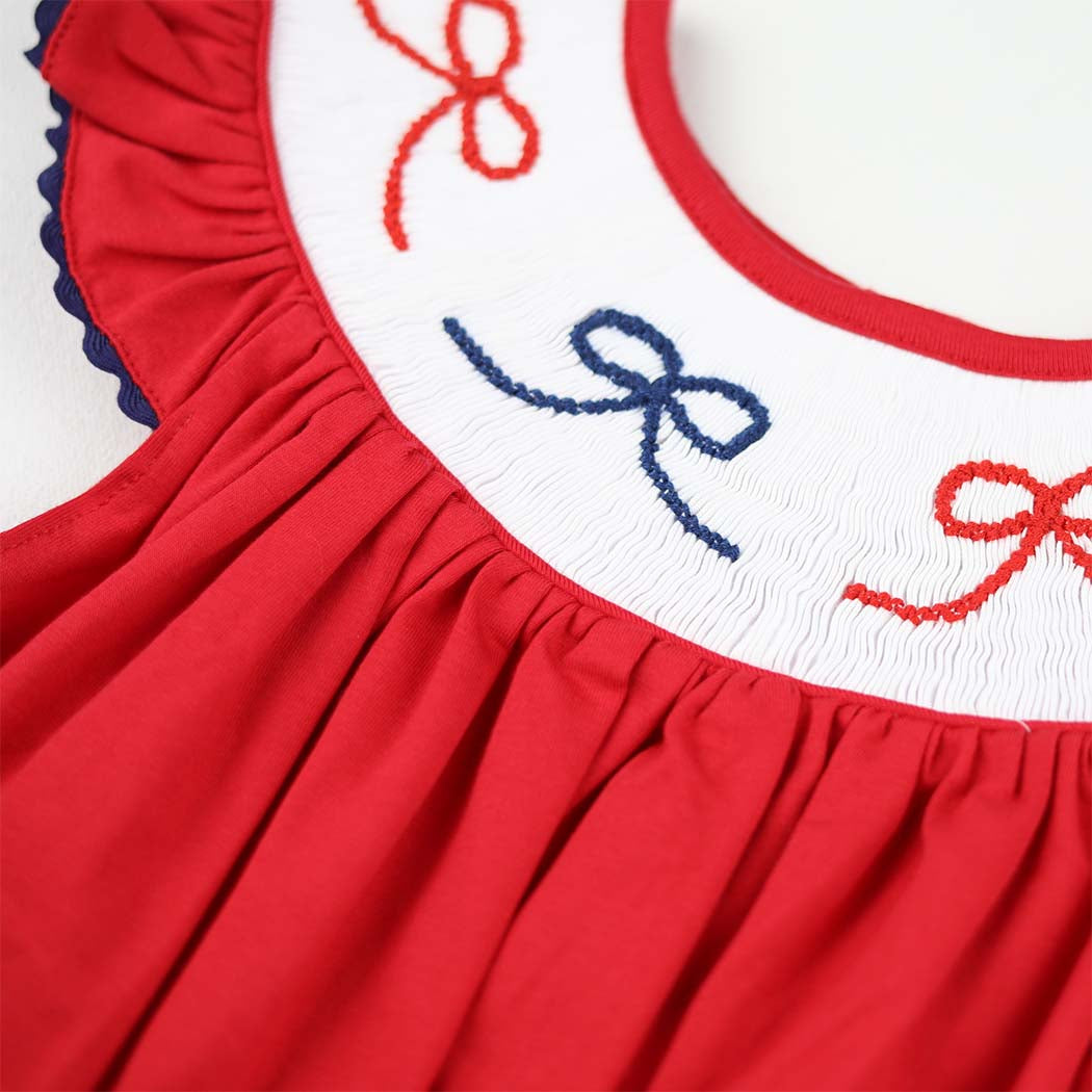 The girls smocked bow dress is a timeless classic with a sweet twist. Featuring delicate smocking and charming bow embroidery, this dress is perfect for special occasions, springtime outings, and picture-perfect moments. A lovely addition to her wardrobe that’s both elegant and playful.