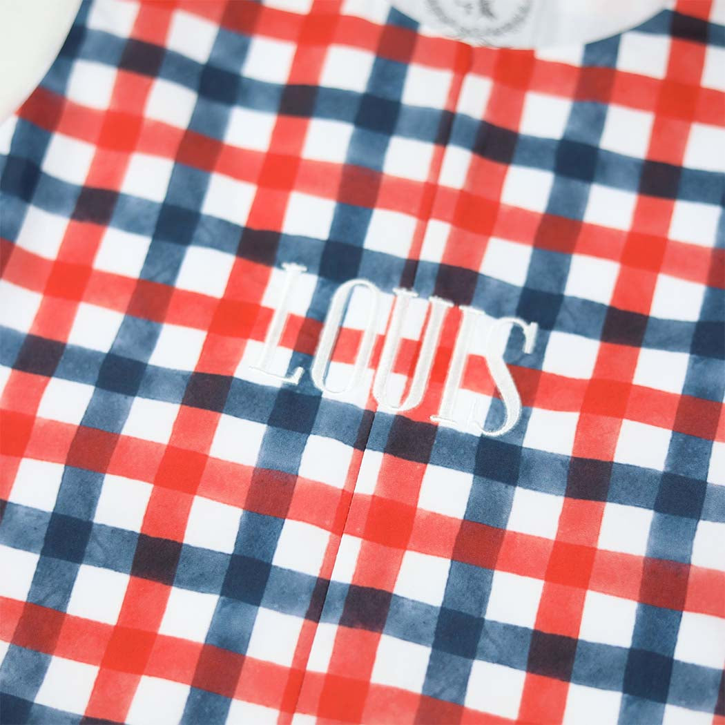 This classic red and blue gingham patriotic swing set is a timeless summertime favorite. With classic gingham fabric, matching red ric rac, and festive red and blue details, this sweet style is perfect for keeping cool during warm weather celebrations like the Fourth of July.