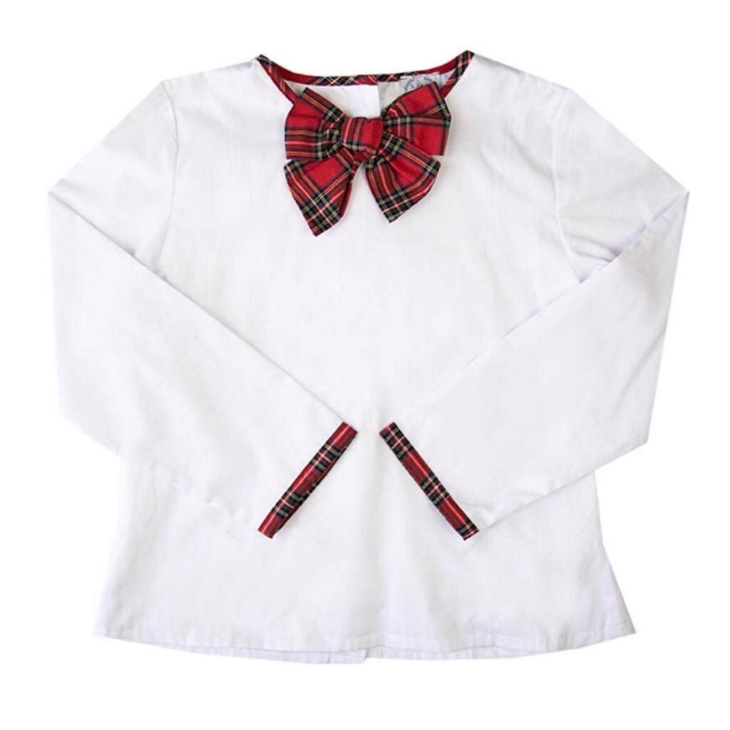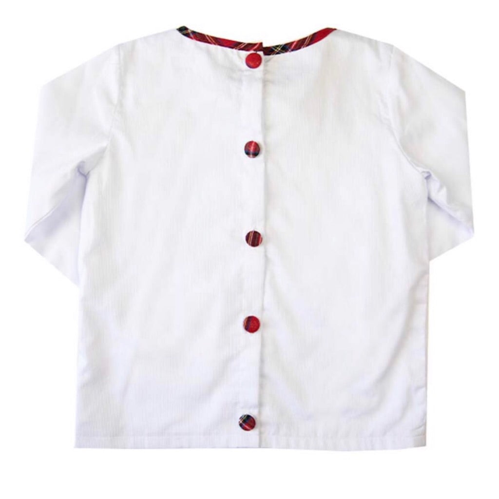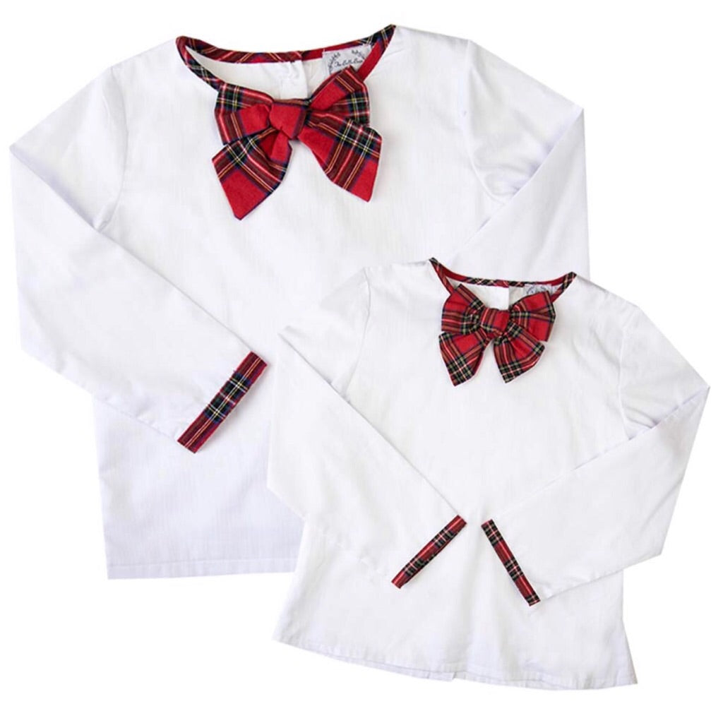 We’re beyond excited to offer our Red Tartan Bow Tops this year for Mommy! And how fun is it to match your little lady?! Constructed from white pique cotton and fully lined, you'll notice the wrists are trimmed in the same red tartan fabric as the bow. Coordinating fabric-covered buttons can be found securing the back of the top. The fit on this top is just perfect!