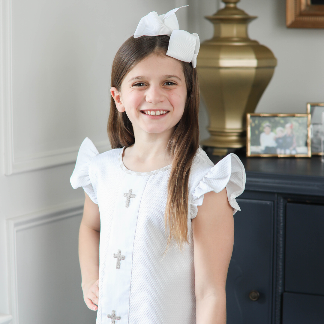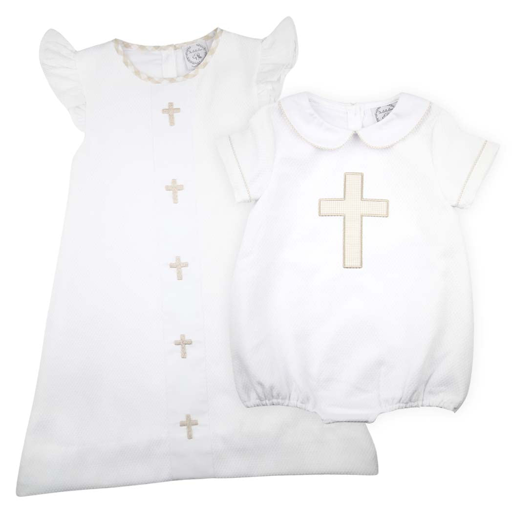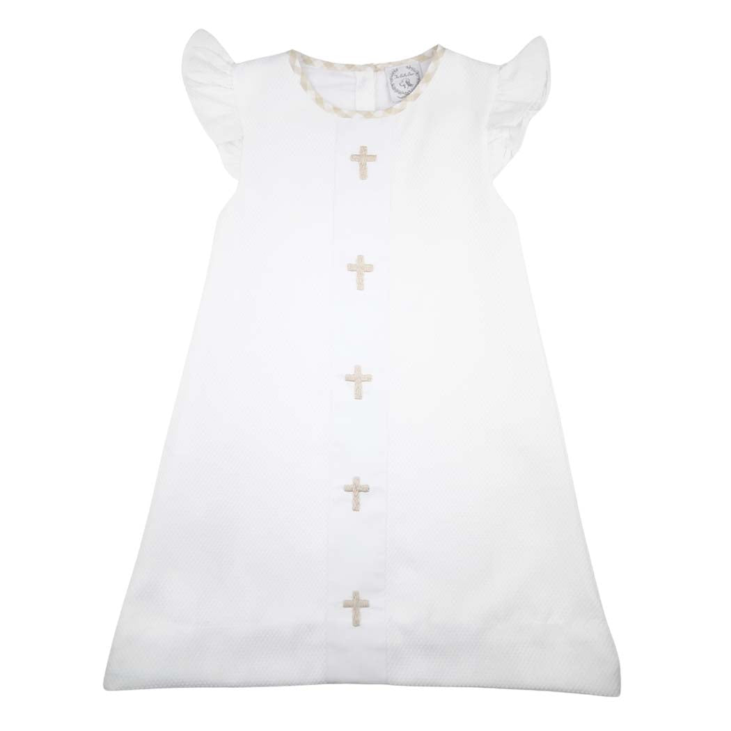 Celebrate Easter with timeless elegance in our White Easter Cross Dress! Featuring delicate tan hand-embroidered cross details, a classic white design, and soft, breathable fabric, this dress is perfect for Easter celebrations, church services, and special occasions. Designed for both comfort and charm, it’s a beautiful keepsake piece for your little one’s holiday wardrobe. Shop now for the perfect Easter outfit!
