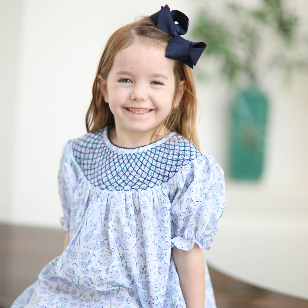 Timeless and beautifully feminine, our Blue Floral Smocked Dress is a lovely choice for spring and summer. Featuring a soft blue floral print with classic smocking detail, this dress blends heirloom-inspired charm with everyday comfort. Designed in a lightweight fabric with an easy, comfortable fit, it’s perfect for Easter celebrations, family gatherings, and warm-weather outings. A polished yet playful dress that’s made for twirling, special moments, and all-day wear.