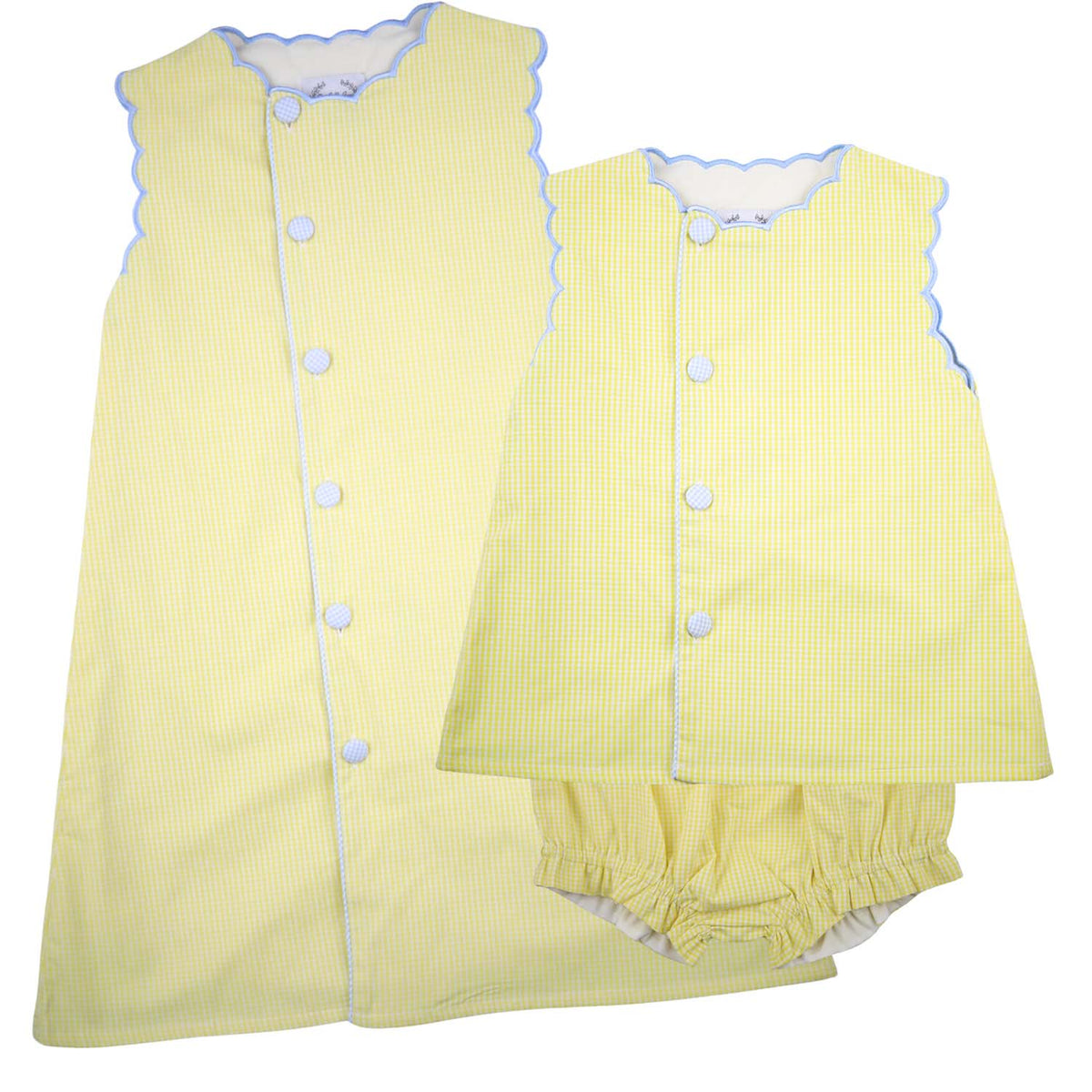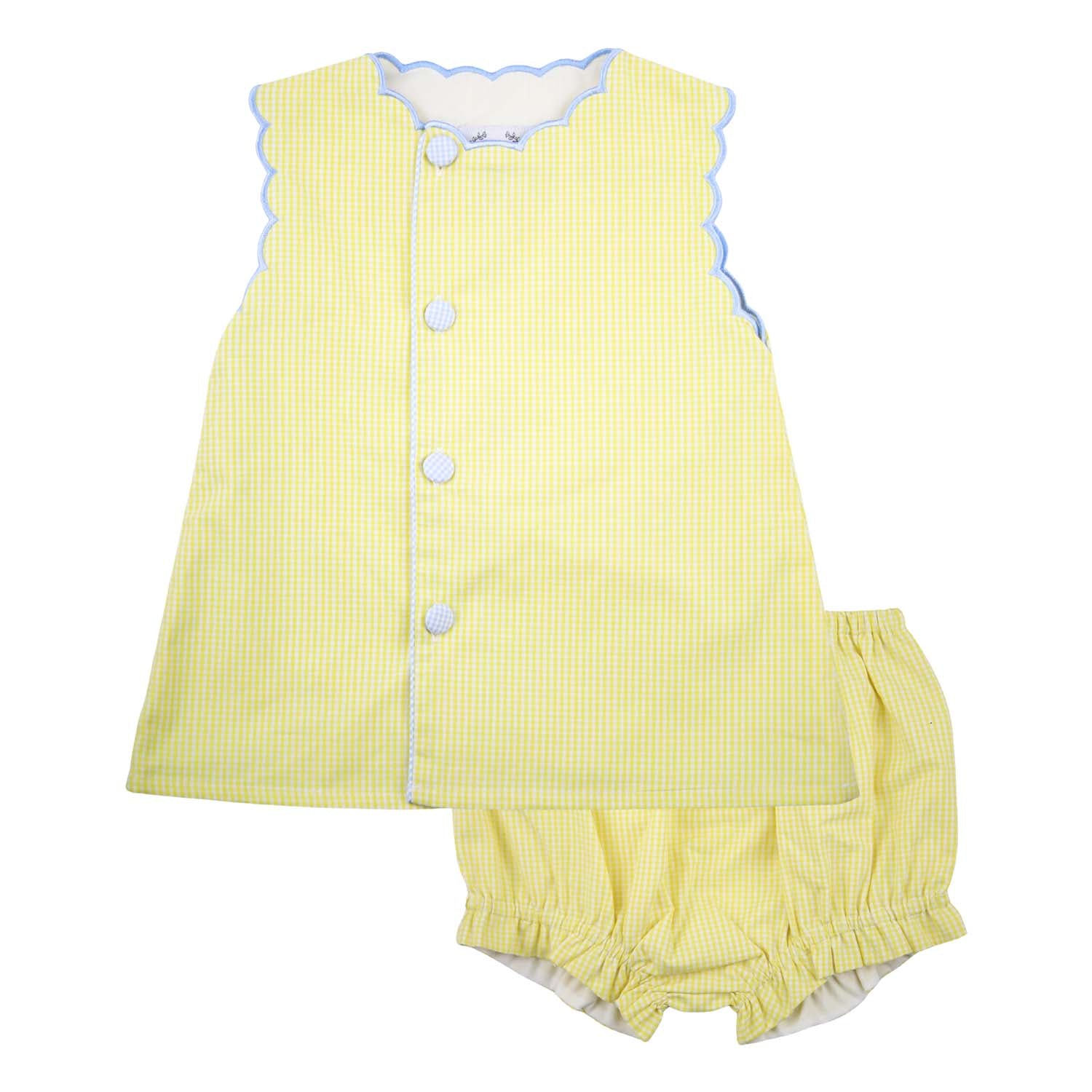 Bright, cheerful, and perfect for sunny days, our Yellow Gingham Scalloped Swing Set is a sweet spring and summer favorite. Featuring a classic yellow gingham print with charming scalloped details, this two-piece set adds a playful yet polished touch to warm-weather dressing. Designed with a lightweight fabric and an easy, comfortable fit, it’s ideal for playdates, family outings, and sunshine-filled adventures. A happy, timeless outfit made for twirling, exploring, and everyday fun.