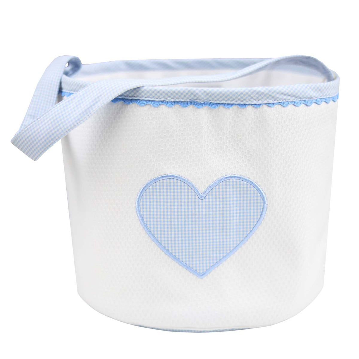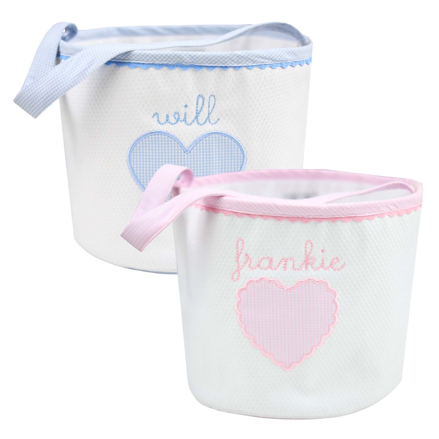 Sweet, soft, and perfectly festive, our White Honeycomb with Baby Blue Gingham Heart Bucket is a darling accessory for Valentine’s Day and beyond. Crafted from soft white honeycomb fabric and adorned with precious a baby blue gingham heart, this bucket is perfect for your little one on Valentine’s Day. Lightweight and easy for little hands to carry, it’s perfect for holding Valentine’s treats, toys, and special little treasures.