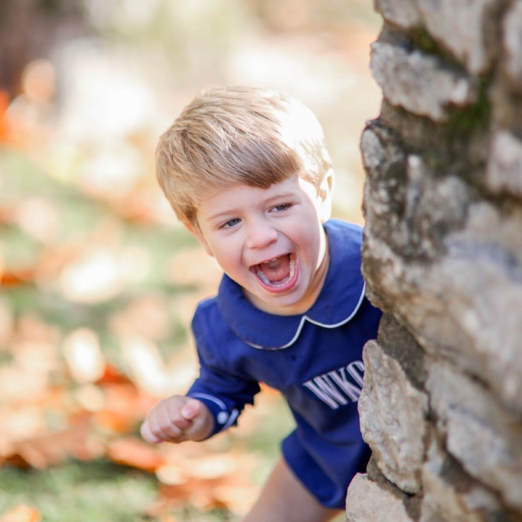 We sure do love a classic Peter Pan collar shirt and we’re excited to be offering a classic bodysuit version for the littlest ones in your life! Made from the softest knit fabric and it can be made extra special by adding a monogram to the chest. Shop this adorable item in four colors: white, pink, navy or red.