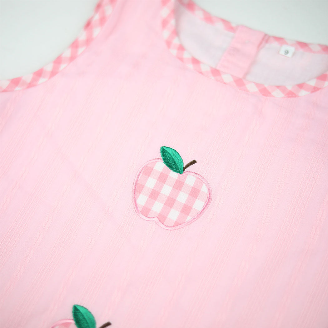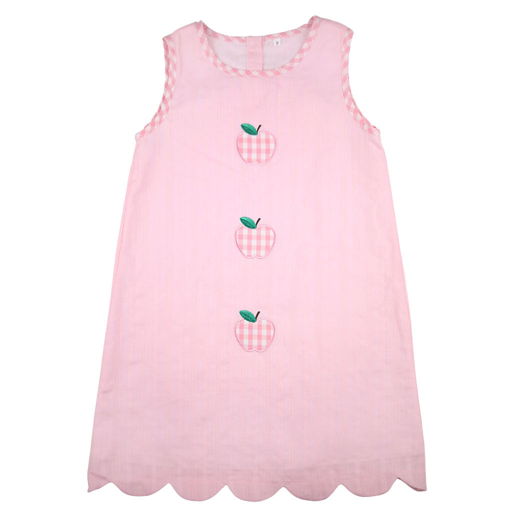 Sweeten up school days with our Pink Gingham Apple Appliqué Dress—featuring a soft knit fabric, pink gingham appliquéd apples, and adorable gingham details on the collar and arm openings. This classic A-line style is perfect for the classroom, picture day, or any fall adventure.