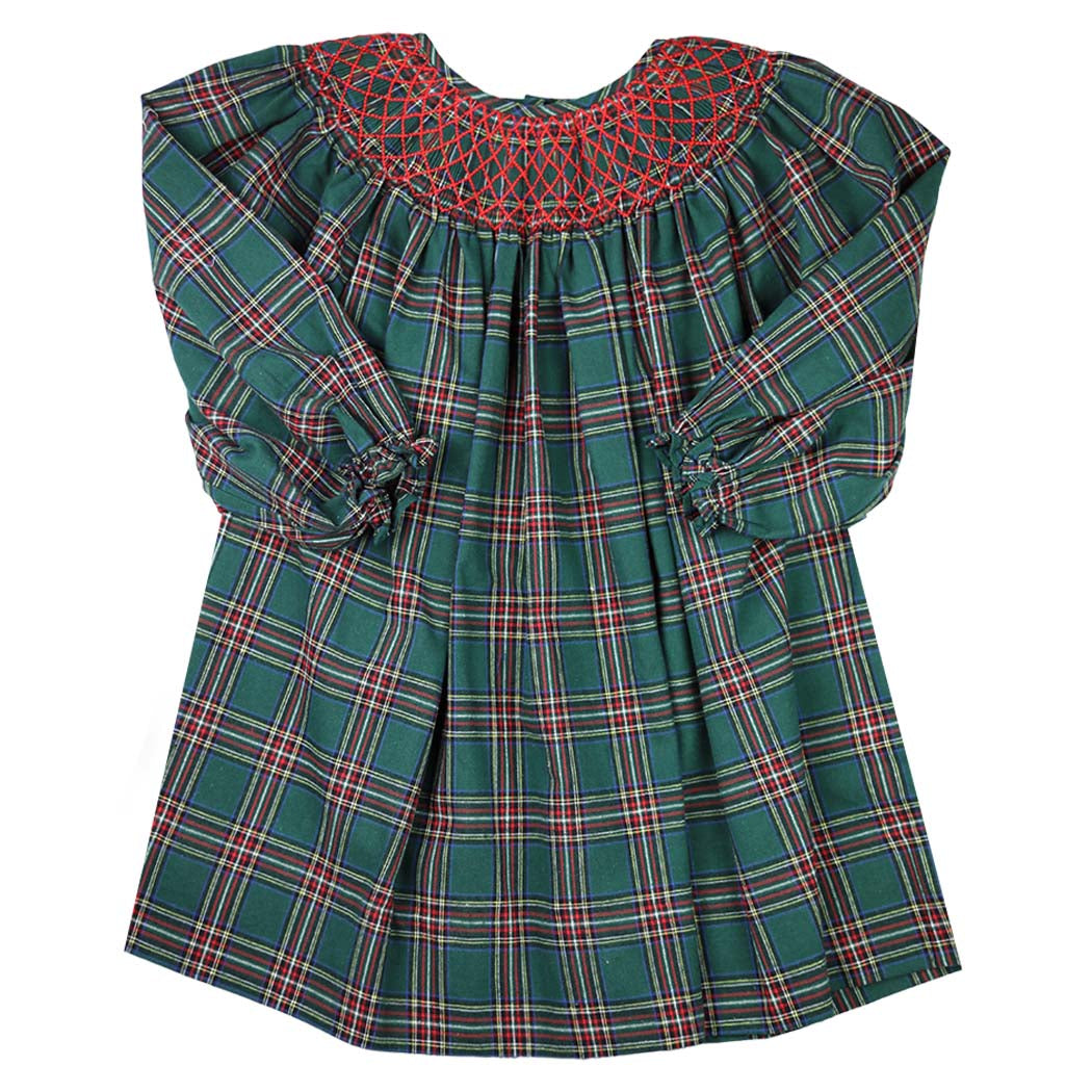 Smocked Green Tartan Dress